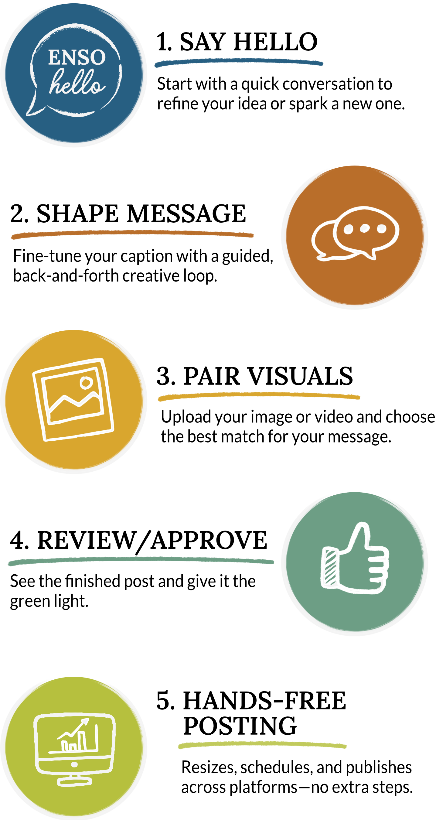 ENSOhello helps us focus on what really matters in a social post—the spark, the story, the soul of our message.